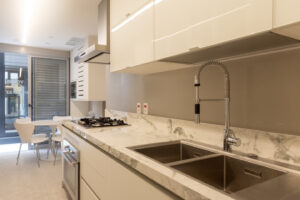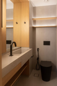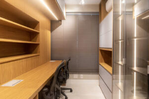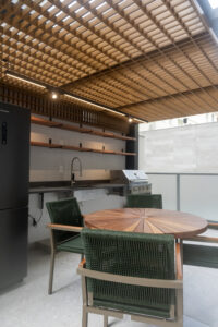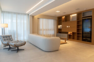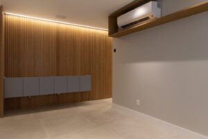 Execução de reforma completa do apartamento desde a demolição ao acabamento final. Em uma das varandas foi construída uma academia em estrutura metálica.